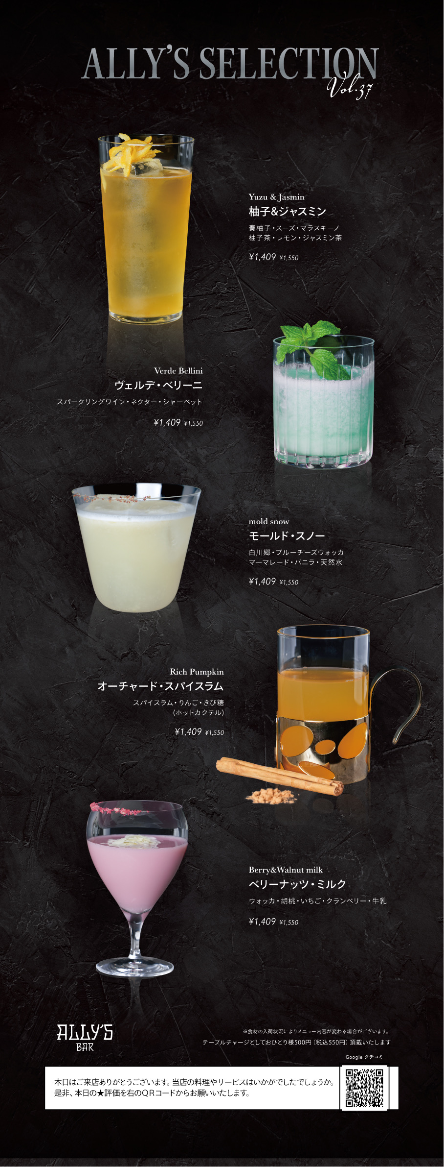 【11月12月限定】季節のおすすめカクテル@八重洲/バー/アリーズバー/ALLY’S BAR