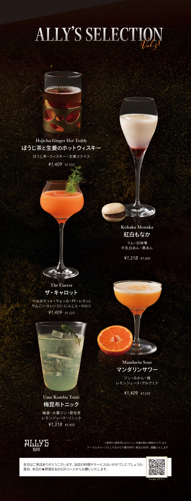 【1月2月限定】季節のおすすめカクテル@八重洲/バー/アリーズバー/ALLY’S BAR