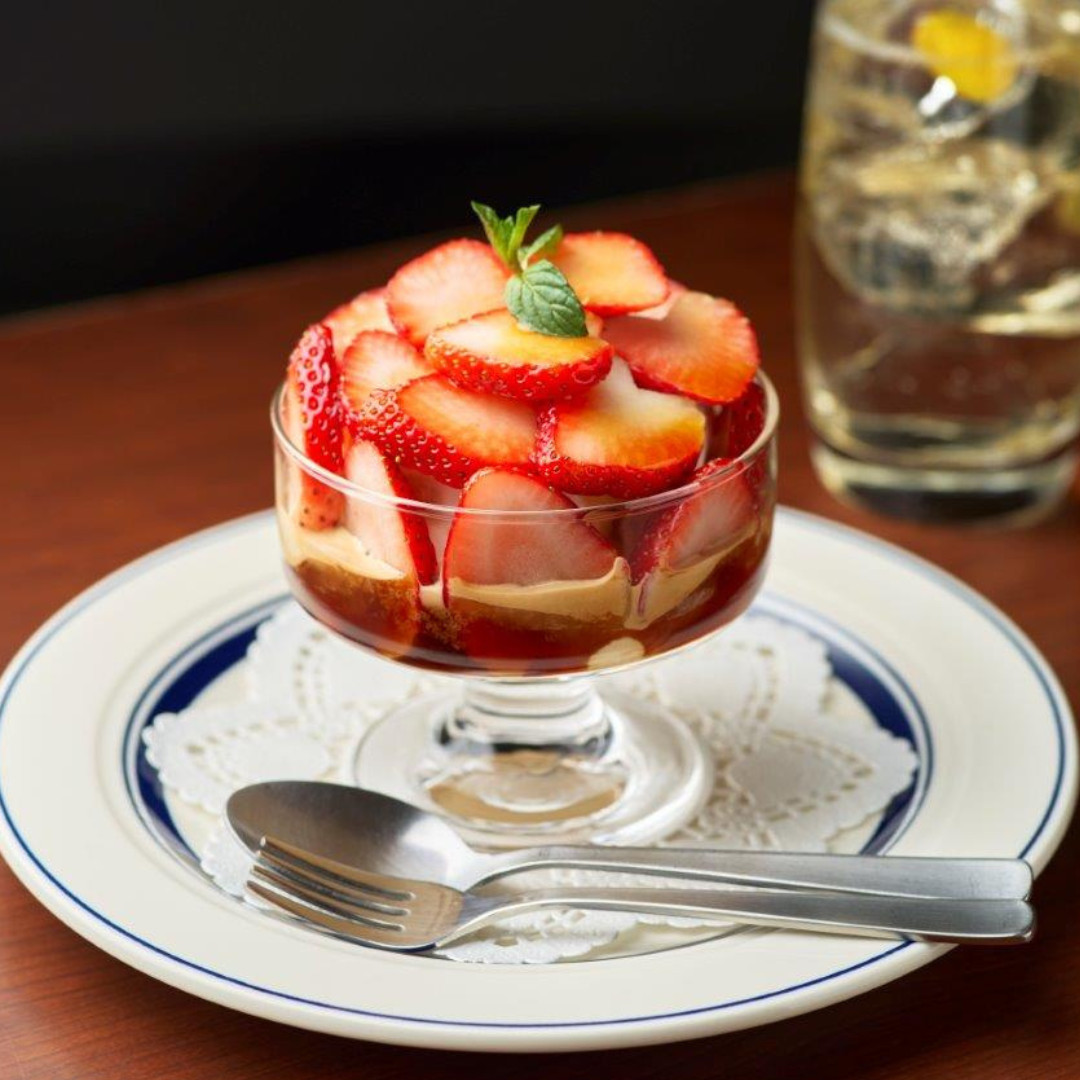 フレッシュな苺をたっぷりと使用したプリン・ア・ラ・モードです。