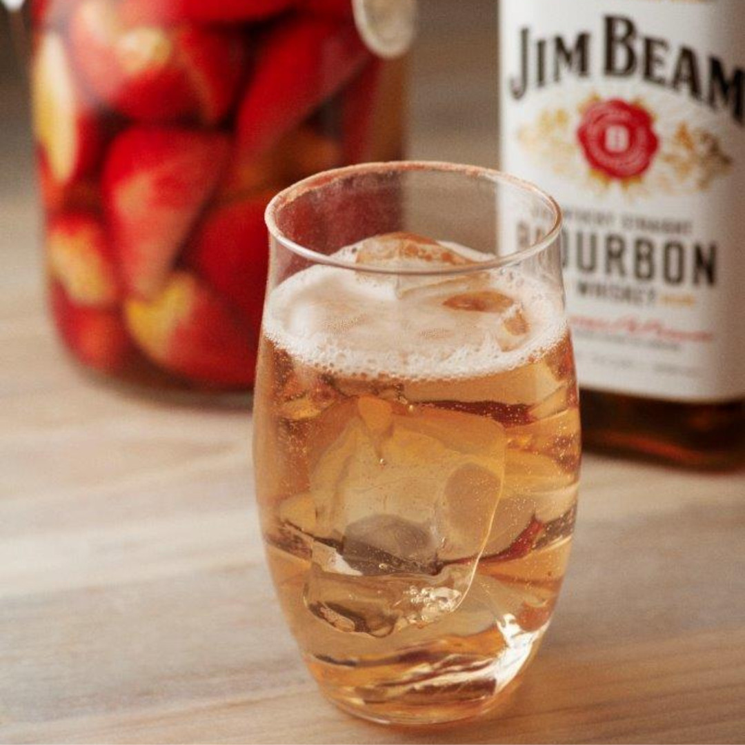 苺を漬け込んだジムビームをストロベリーパウダーのスノースタイルで。