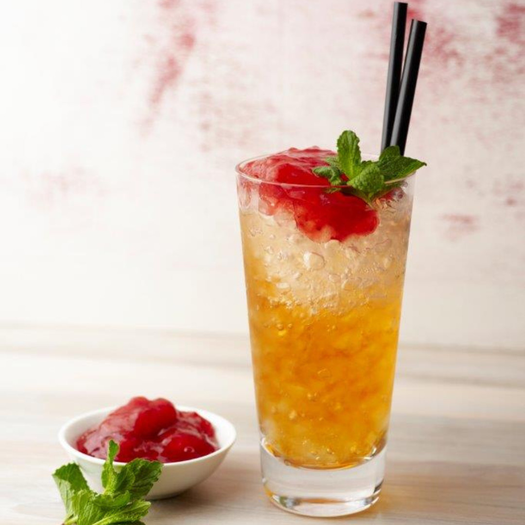甘酸っぱい苺と水出しアールグレイの爽やかなノンアルコールハイボール。ミントの香りをお楽しみ下さい。