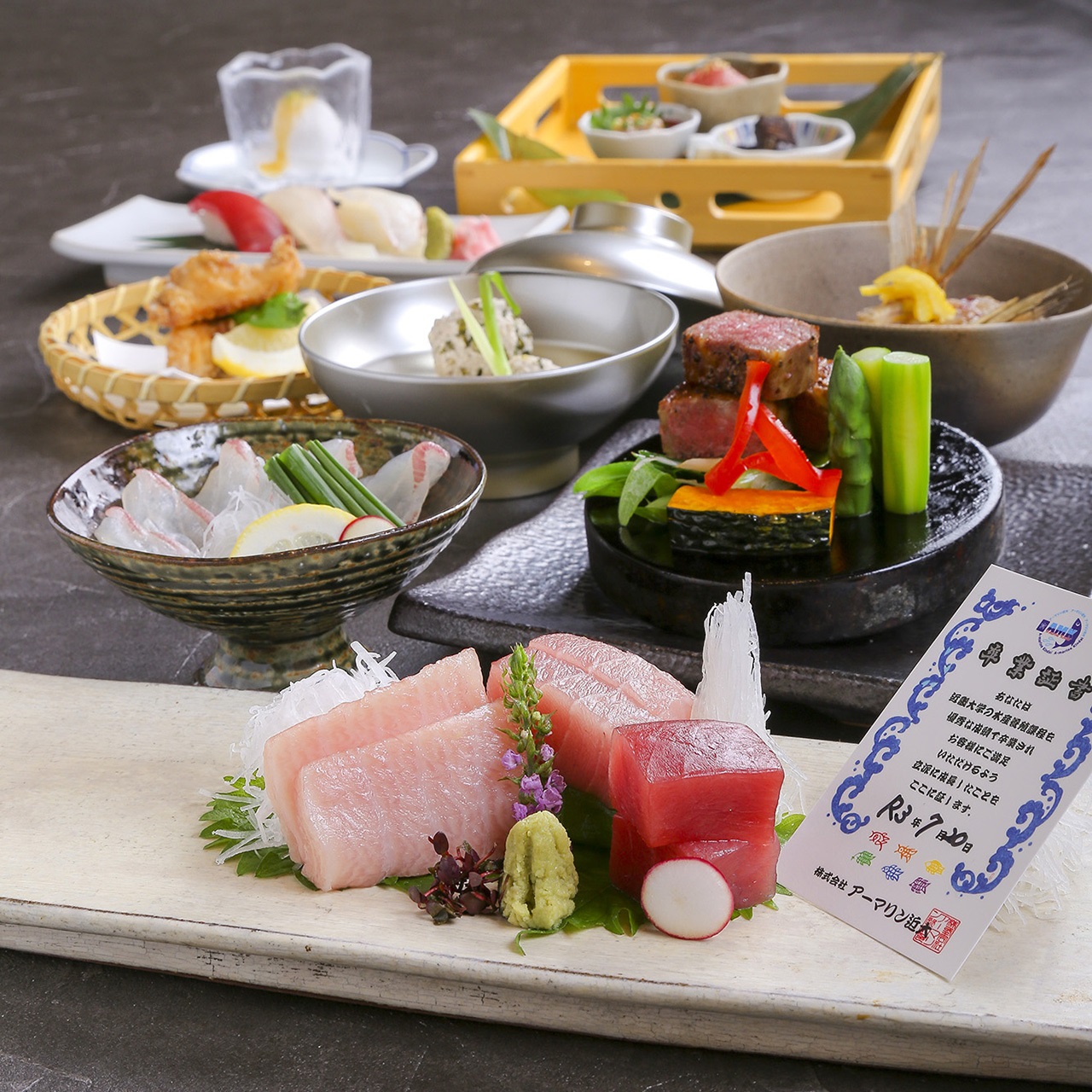 様々なコースに「近大マグロと近大卒の魚のお造り盛り合わせ」がございますので、各コース内容をご確認の上、前日までにご予約くださいませ♪