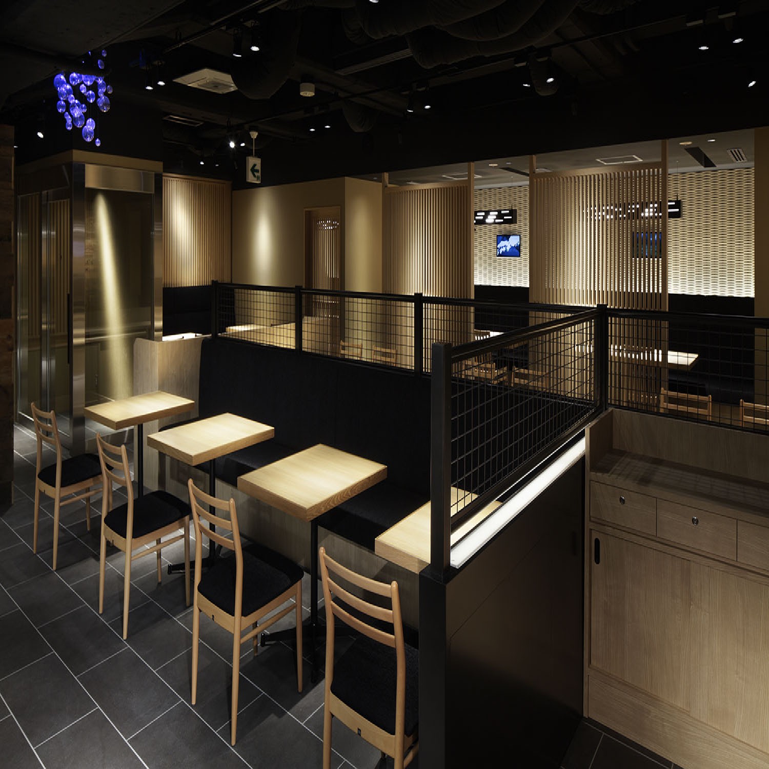 店内は海をイメージした空間に木のぬくもりあるテーブルで揃え、落ち着いた空間でお食事いただけます。