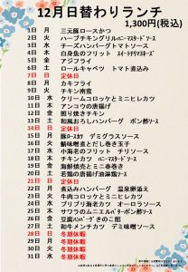 12月の日替わりランチ