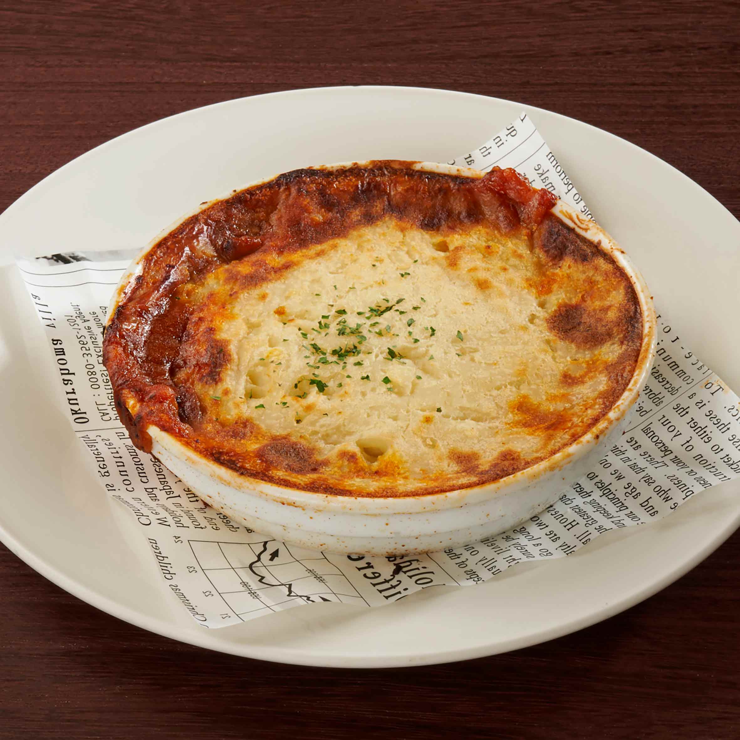 ミートソースとマッシュポテトのグラタン