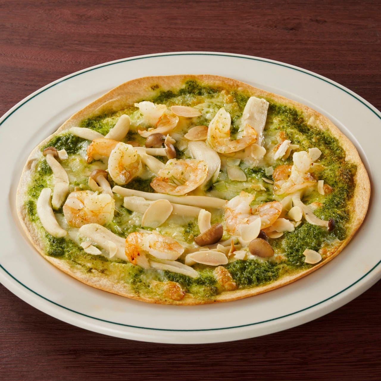 海老とキノコのバジルピザ