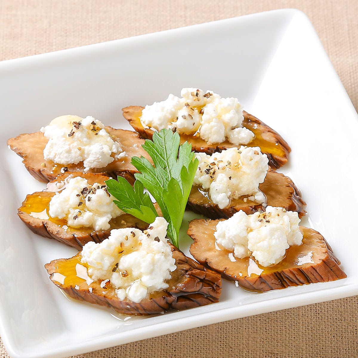 いぶりがっこのカッテージチーズのせ