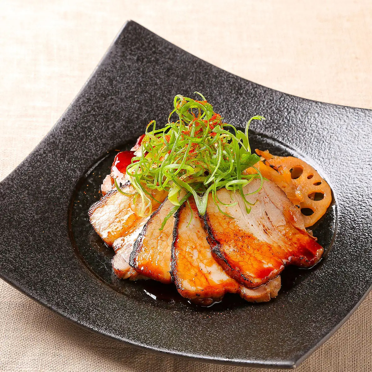 炙りチャーシュー 五香粉香る蓮根きんぴら添え