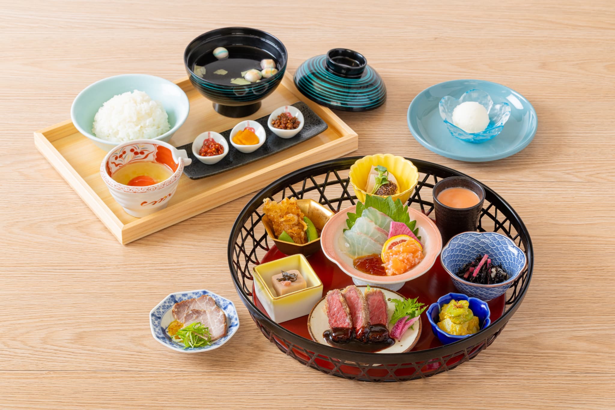 最高級炊飯ジャー「炎舞炊き」であなたのためだけの炊きたてごはんをご用意いたします。季節の恵みをそっと忍ばせた玉手箱に、黒毛和牛のステーキと和牛ローストビーフの贅沢な饗宴を添えました。大切な方と、心に残る優雅なひとときをお過ごしください。